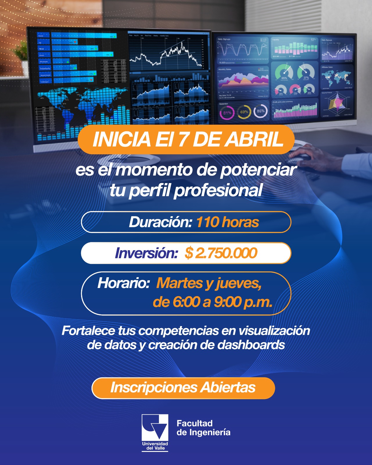 La Escuela de Estadística de la Universidad del Valle ofrecerá el Diplomado “Visualización de Datos y Creación de Dashboards”, cuyo objetivo es capacitar a los profesionales en la transformación de datos en información clara, estratégica y fácil de entender para la toma de decisiones.